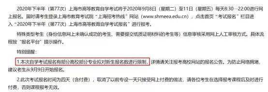 今年发布的上海报考公告中,提出了部分高校部分专业的新生报名数限制,比如 复旦**的行政管理专升本专业报考新生限定为600人,对新闻学专升本专业报考新生限定为100人。